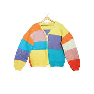 Playful Multi-Color Women's Organic Wool Cardigan - Perfect for Any Occasion. Discover Sustainable Fashion!