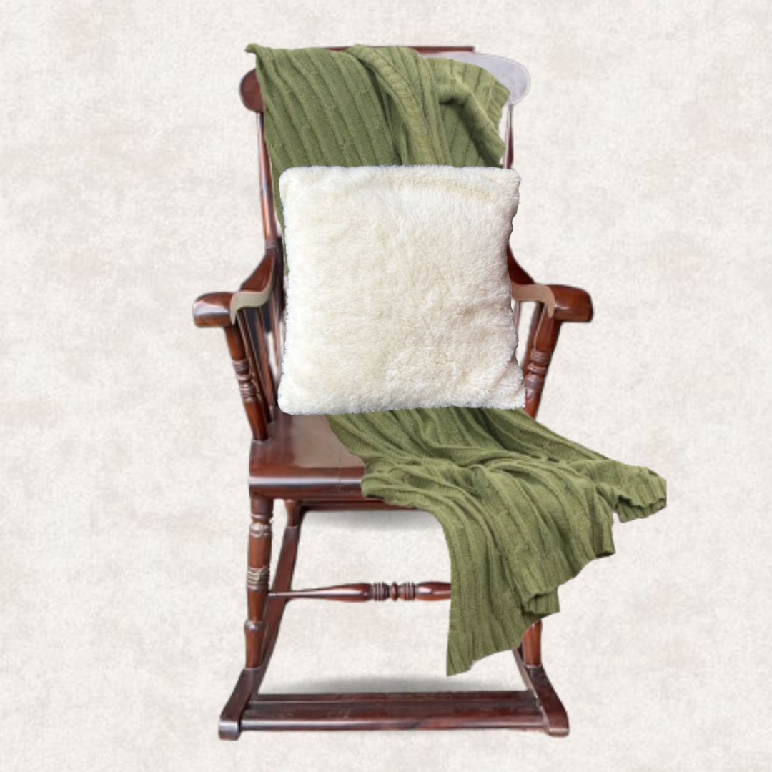 White Cushion with Sherpa Fabric Front and Back