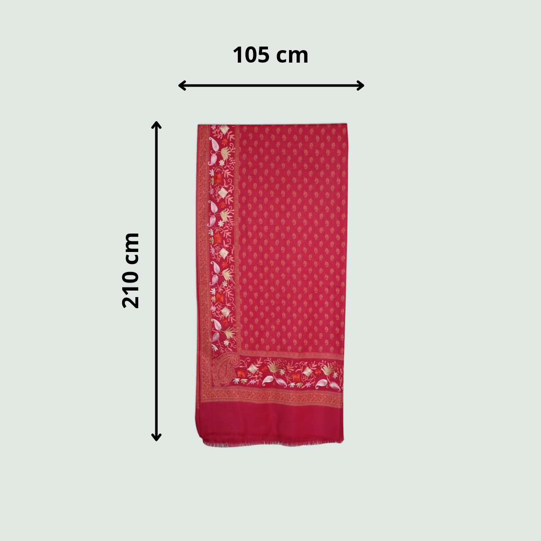 Pretty Pink Embroidered Odhani | Stoles & Shawls | 100% Wool