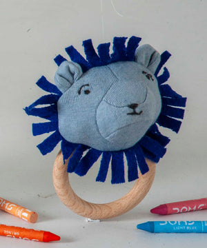 Lion Rattle Knitted Light & Dark Blue Stuffed/Plush/Soft Toy | 100% Premium Cotton