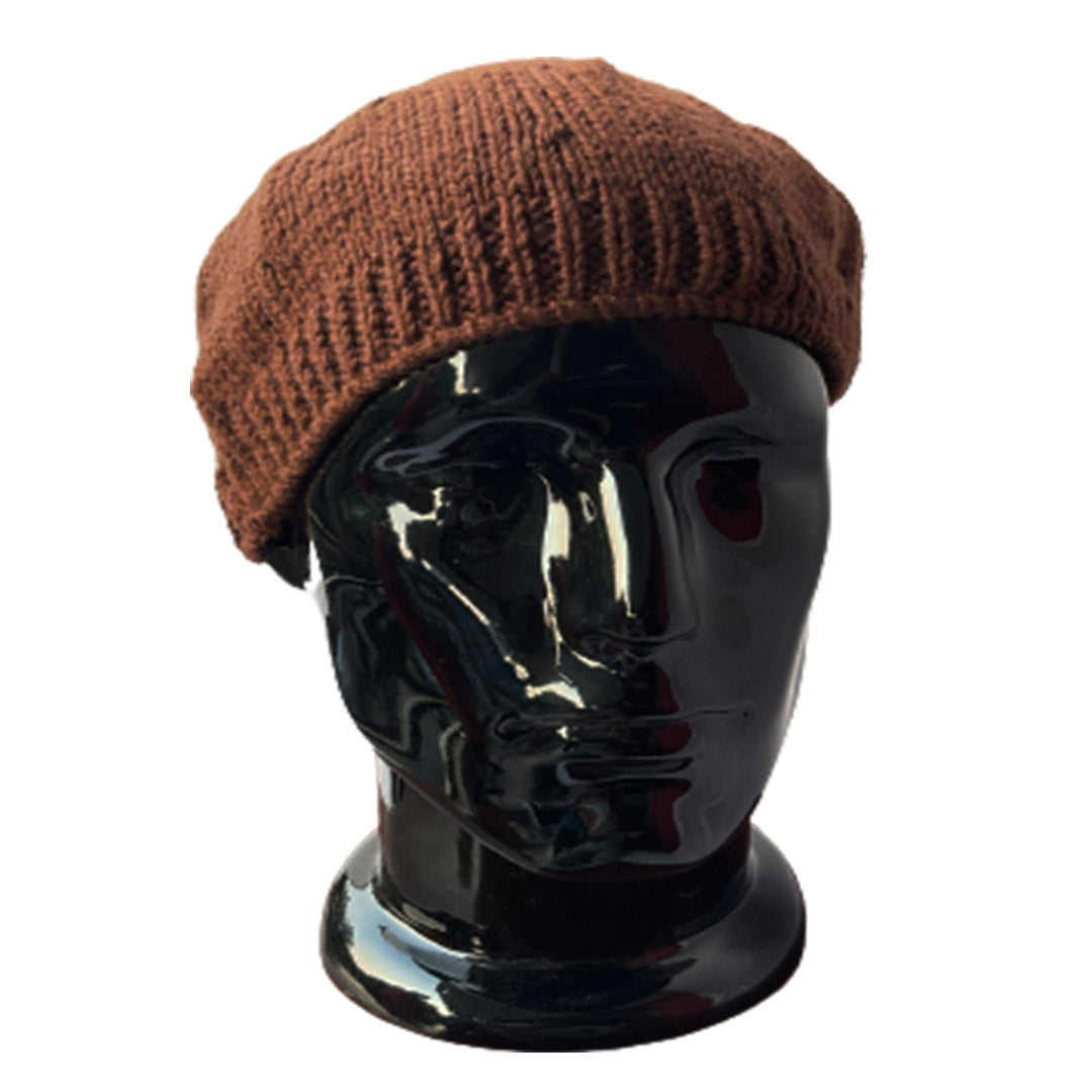 Hand-knit woolen cap for eco-conscious style and comfort.