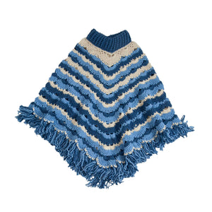 Poncho Round Neck - Crochet - Blue & White | For Women | 100% Organic Wool