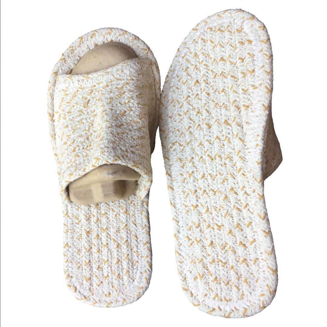 Sustainable comfort in natural fiber open-toe slippers - ideal for eco-conscious living.
