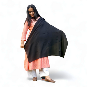 Black Wool–Silk Blend Stole | Soft, Luxurious & Lightweight | Classic Solid Design