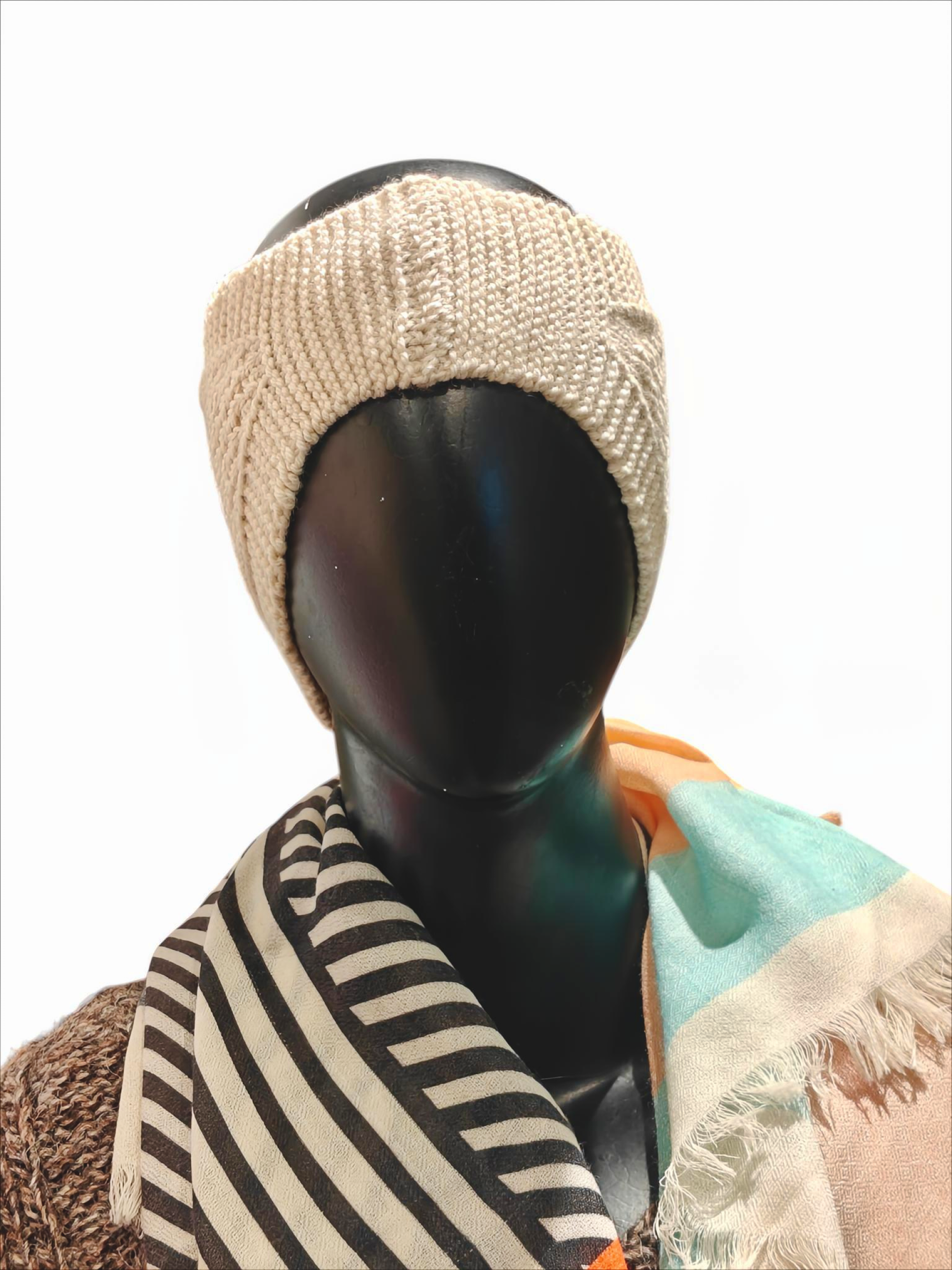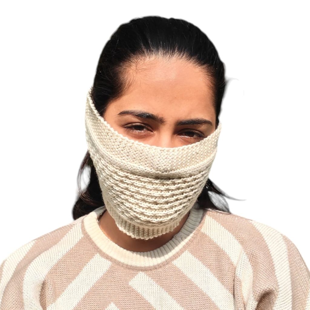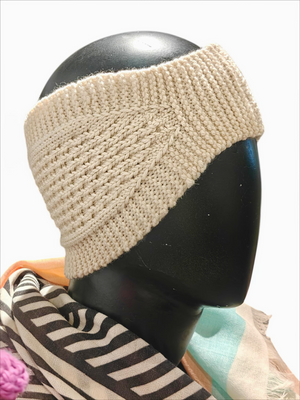 This ivory wool bandana offers a clean, classic winter look. Handcrafted from pure wool, it ensures warmth, comfort, and long-lasting quality.