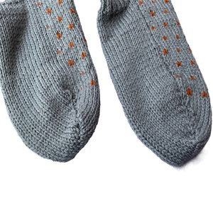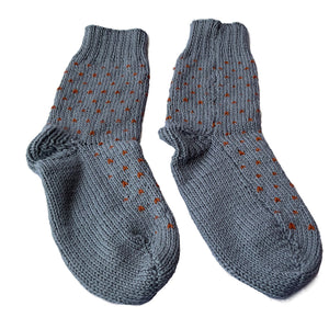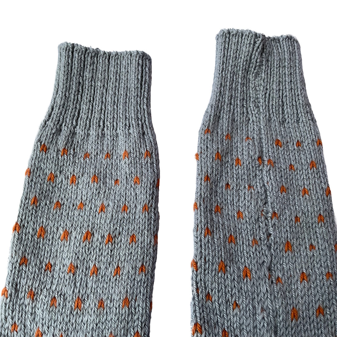 - Elevate your comfort with sustainable organic wool socks in ultimate grey and tomato cream.