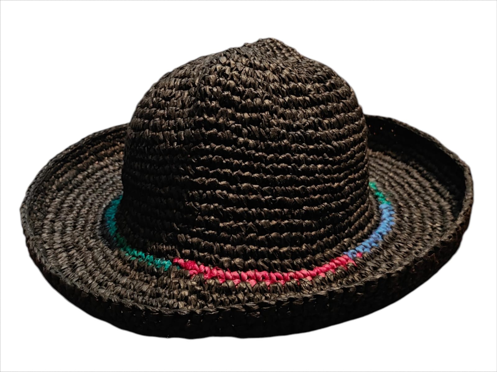 Hand Knitted Raffia Hat / Cap , this black woven hat is lightweight, breathable, and perfect for beach Wear and for sun protection.