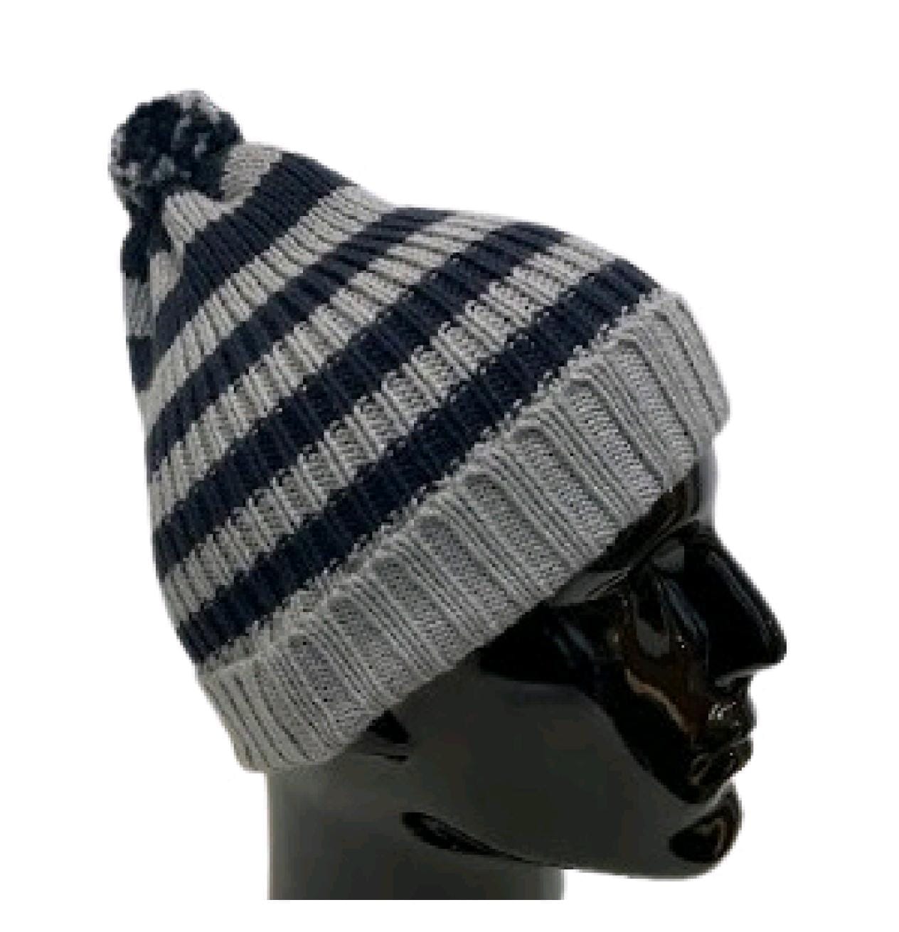 Stay cozy in timeless style with this handcrafted 100% wool beanie, knitted using fine 4/8 NM yarn for natural warmth and breathability. Featuring a classic navy blue & ivory striped design, this beanie offers a snug, comfortable fit—perfect for everyday winter wear and effortless layering.