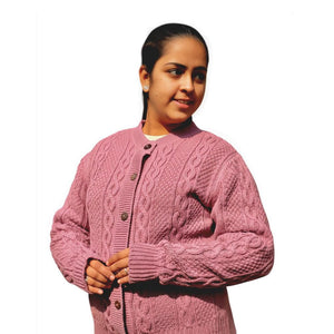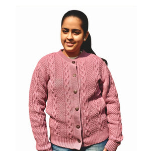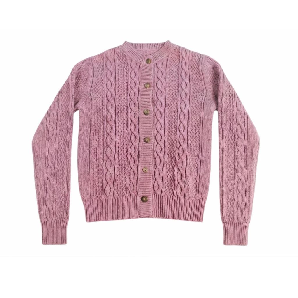 100% Wool Handcrafted Cable Knit Cardigan – Pink |
