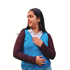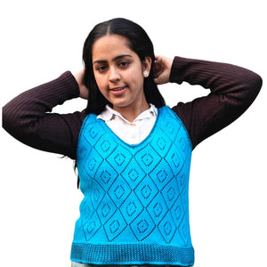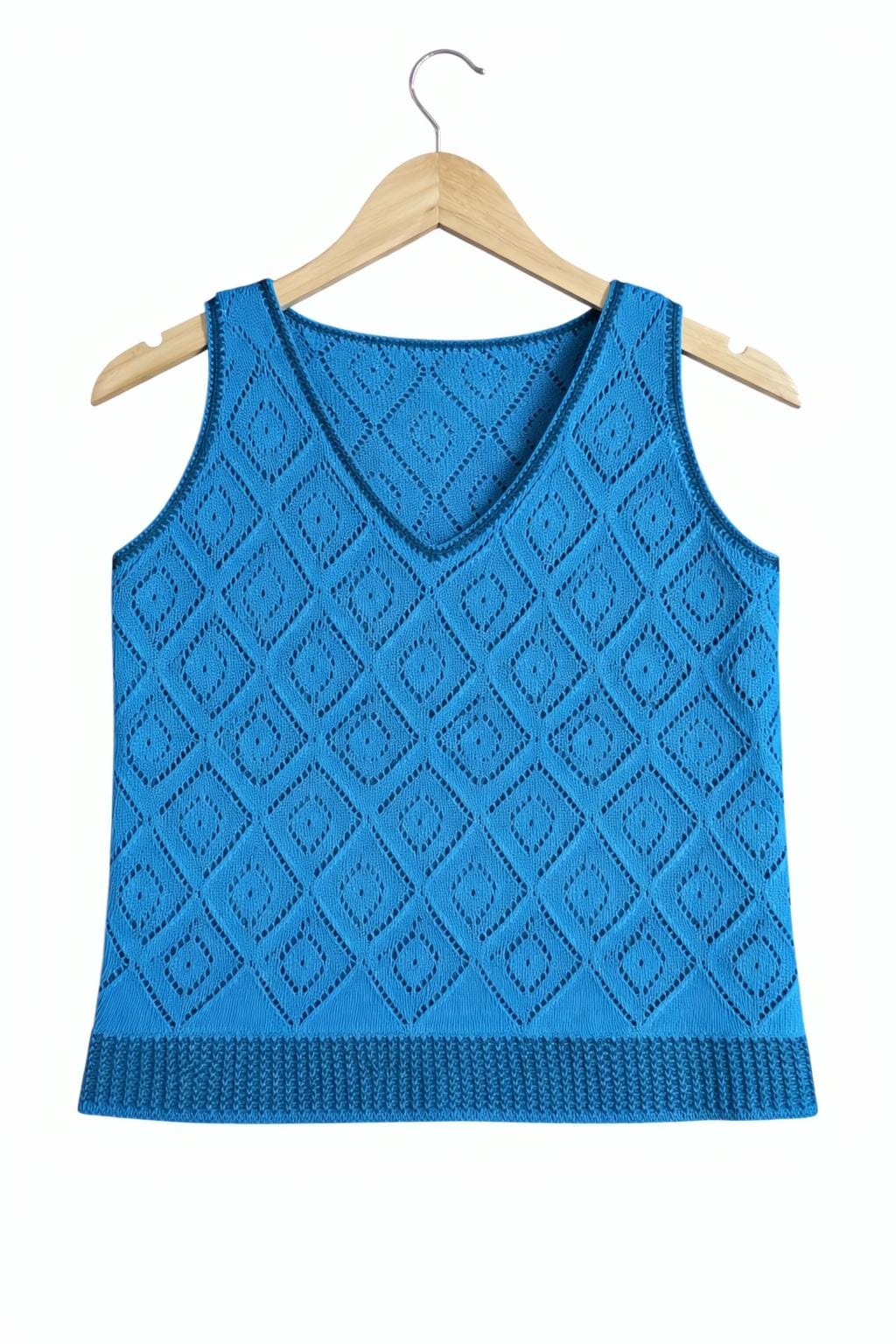 Eco-friendly blue knit top made from recycled cotton. Lightweight, breathable and perfect for everyday summer wear.