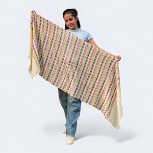 Check Multicolor Wool Silk Blended Stole | Vibrant Plaid Design | For Women