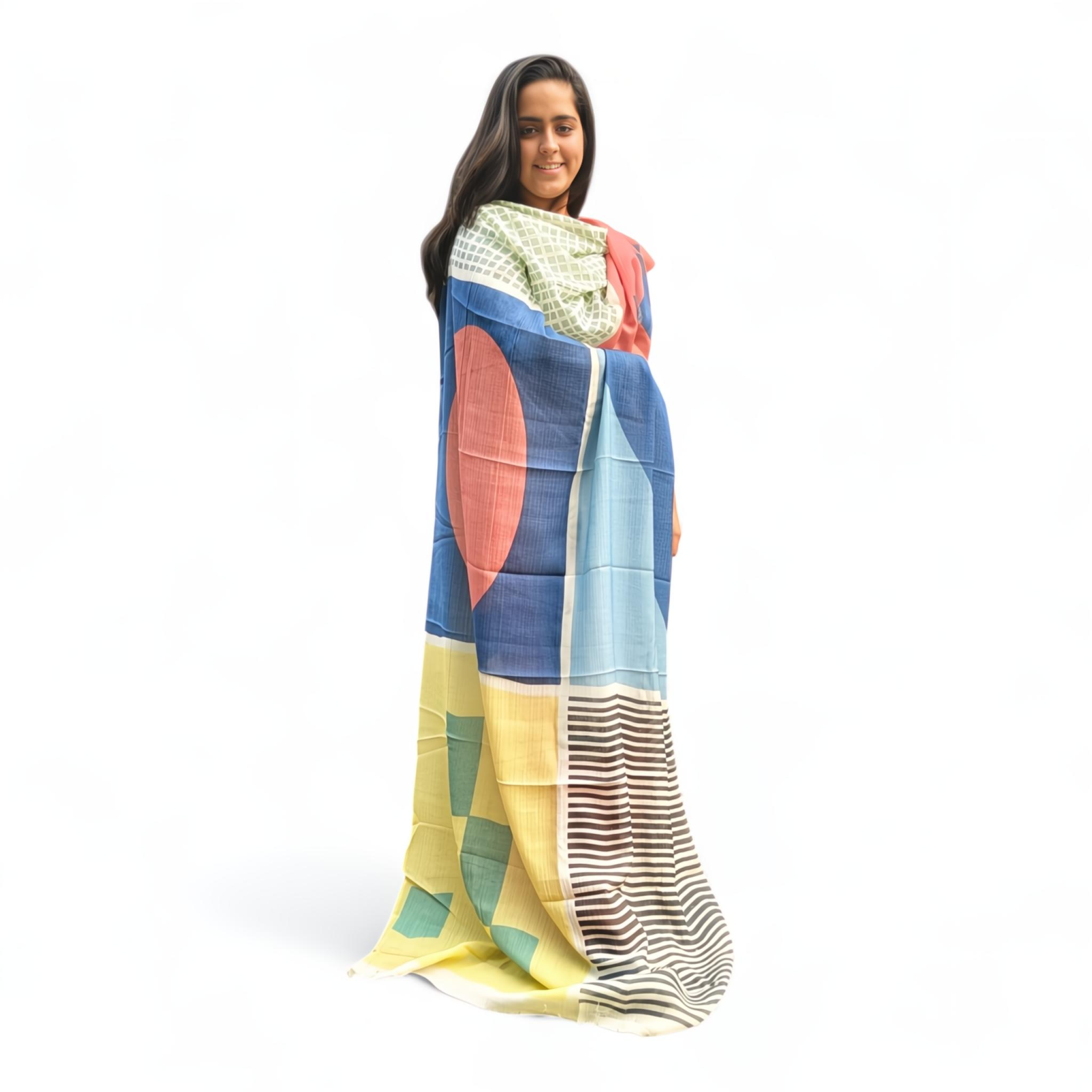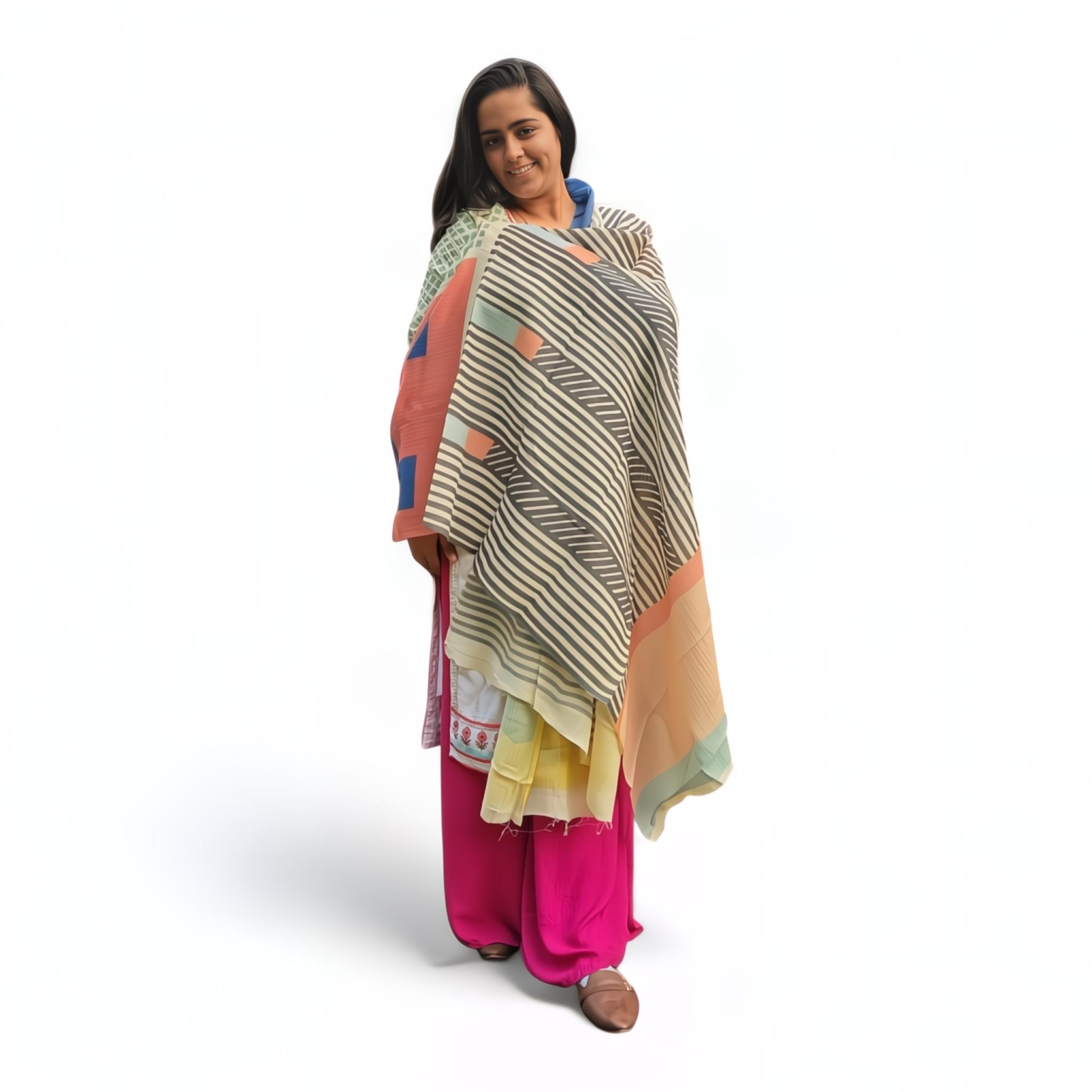Multi-Color Wool Silk Blended Stole | Elegant Grid Design | For Women
