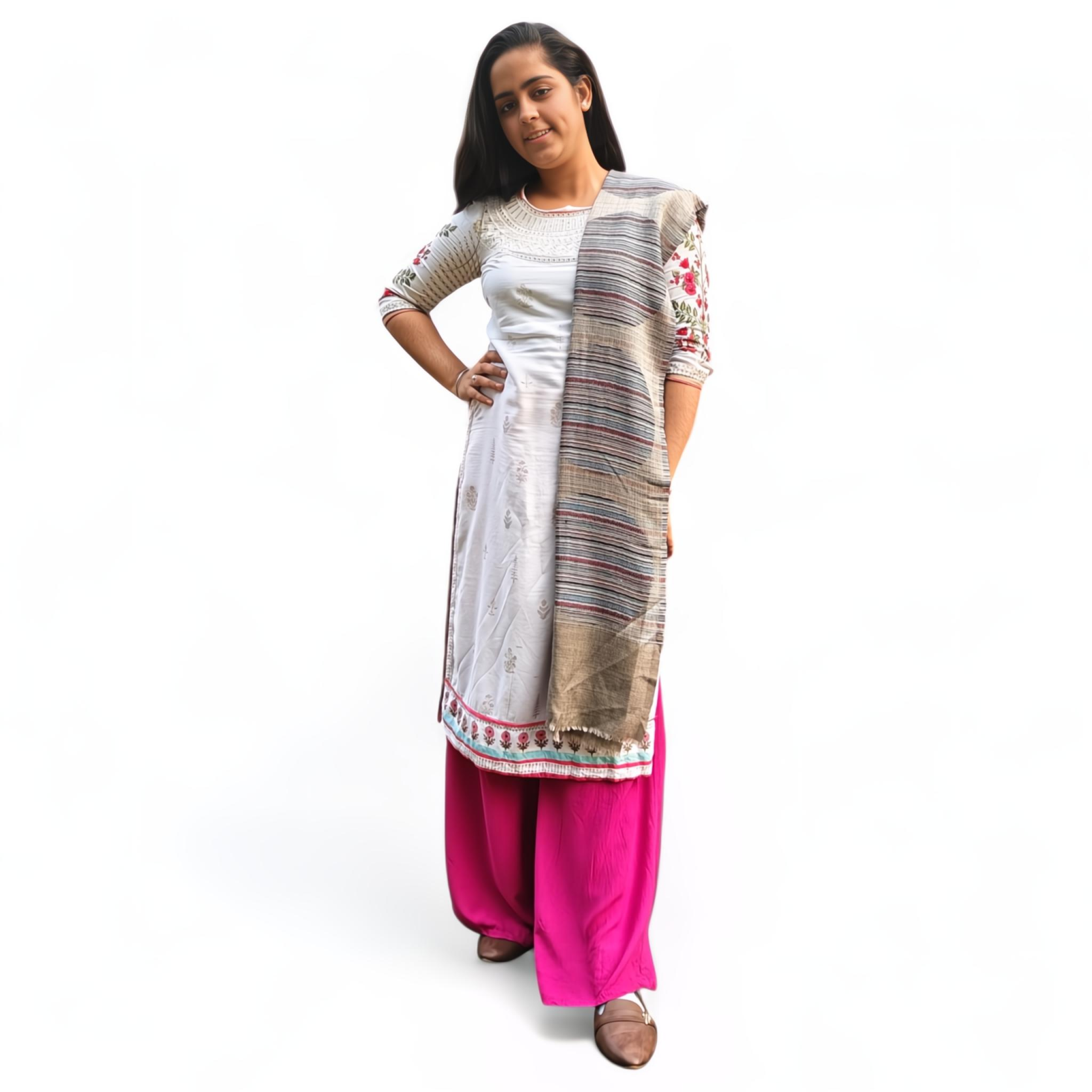 "Multicolor Wool Silk Blended Stole | Elegant Striped Design | For Women
