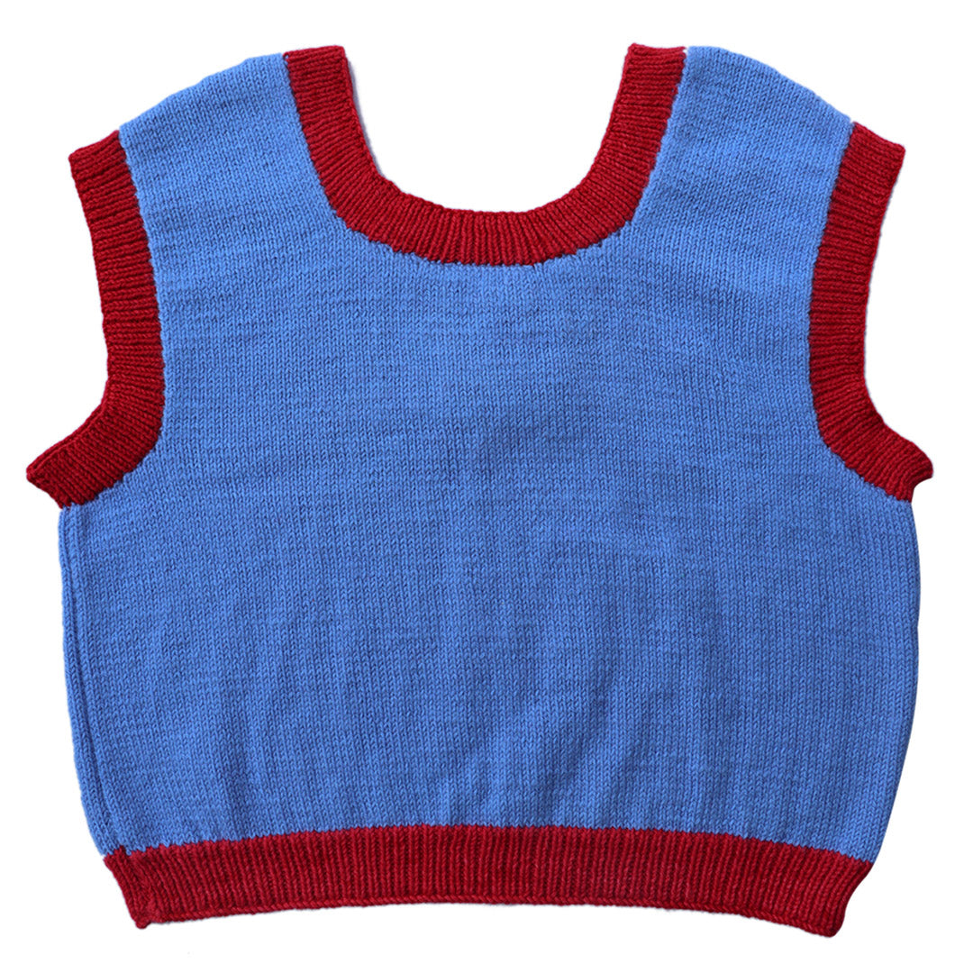 Natural Fiber Chic - Red & Wild Blue Wool Top - Hand-Knit, Organic, Skin-Friendly.