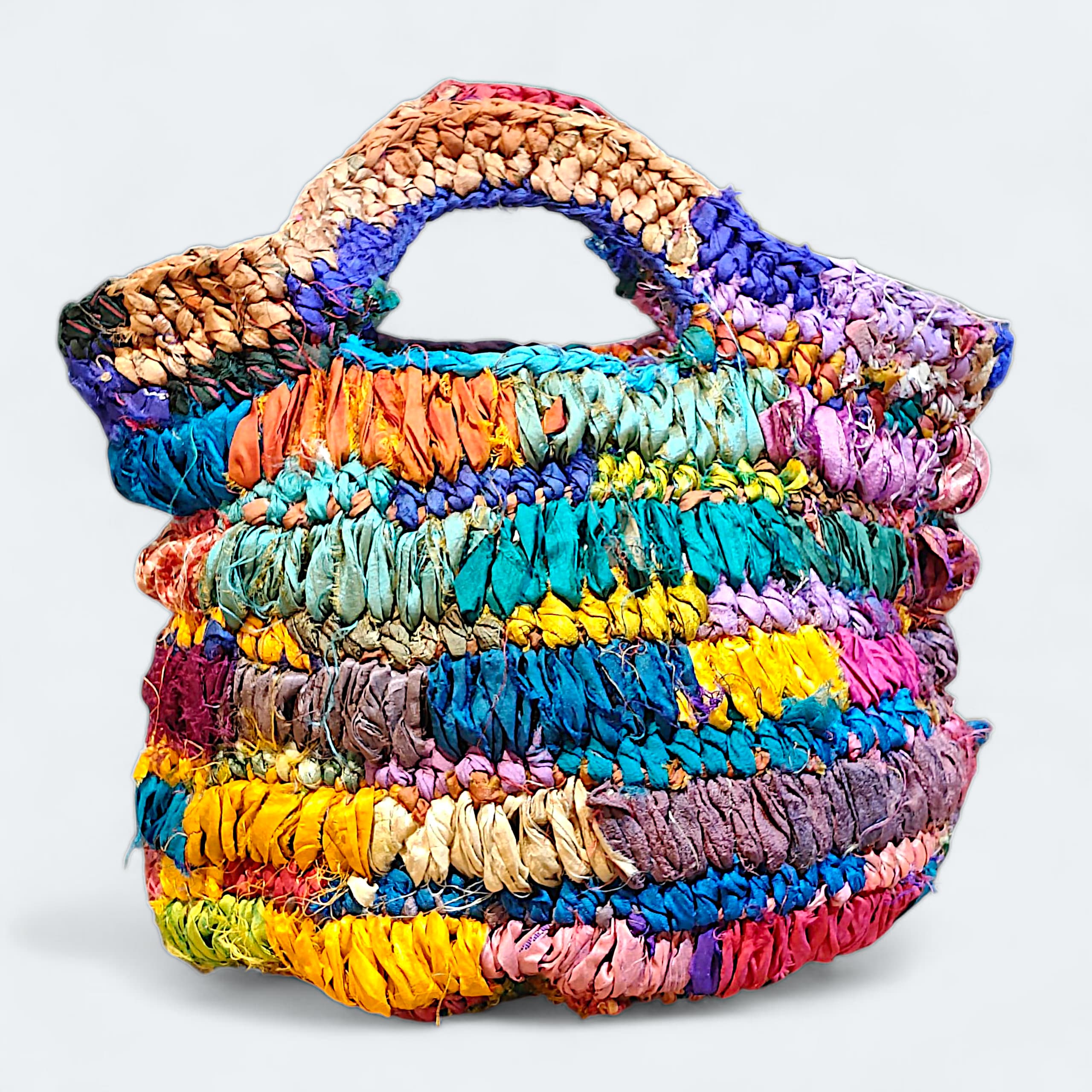 Upcycled Silk Sari Ribbon Bag – Multi-Color, Eco-Friendly & Handcrafted